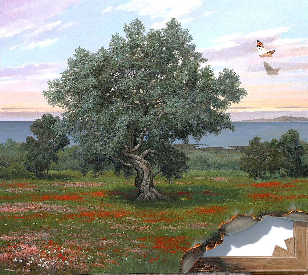 Burned Paintings“GLOWING AFTERNOON” oil on canvas 50/60cm