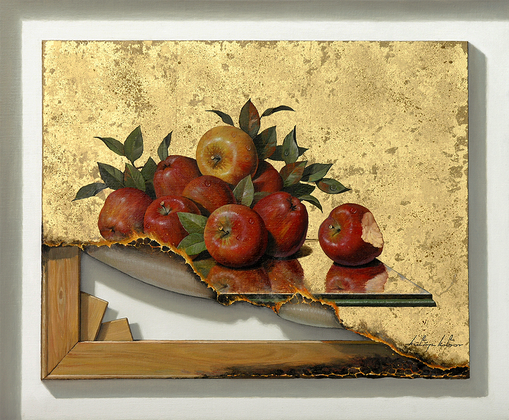Burned Paintings , Food , Fruit“ON FIRE” oil on canvas 50/60cm