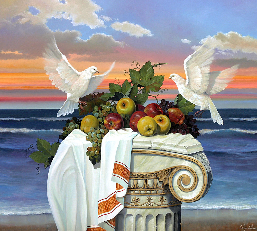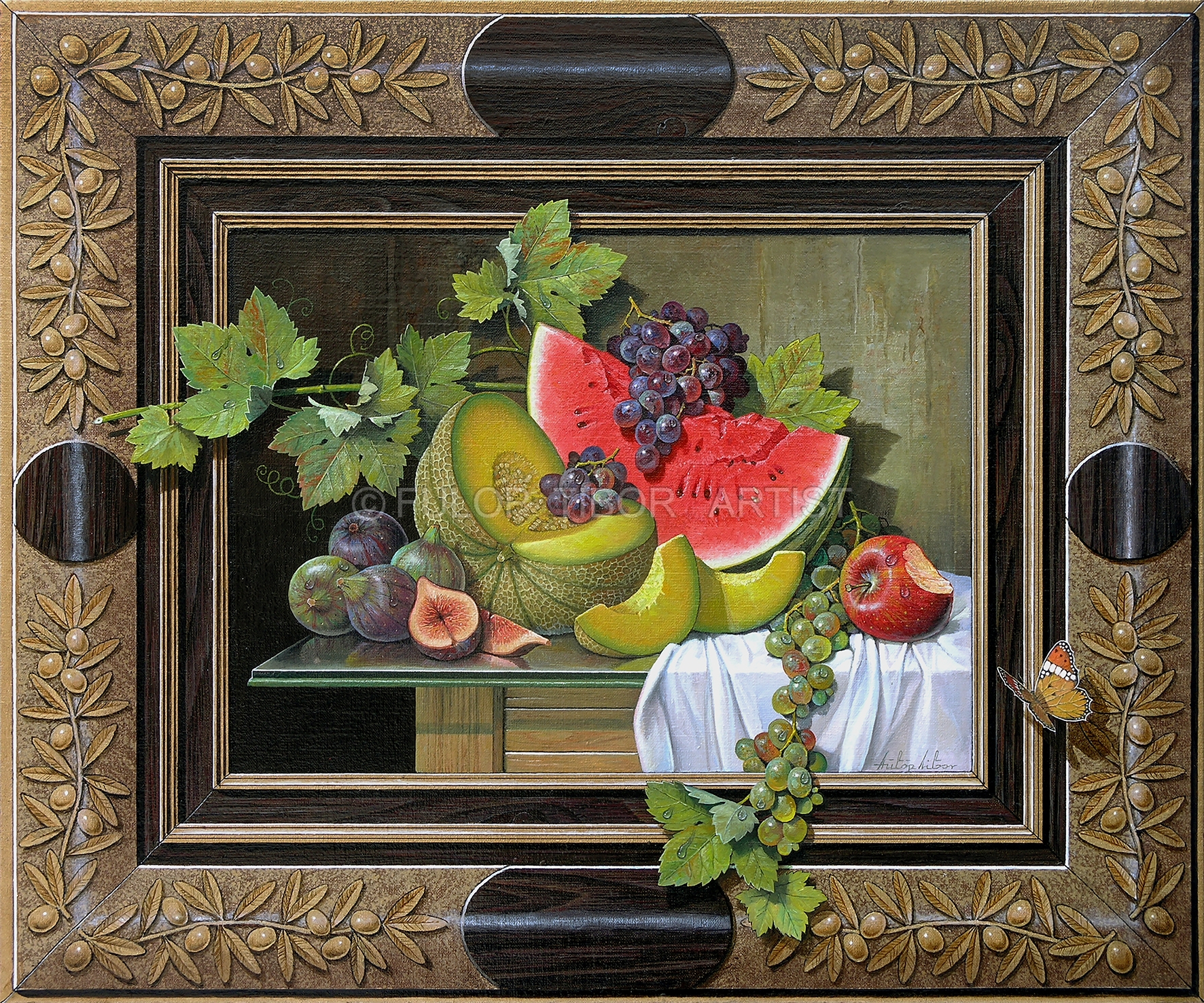 Food , Fruit , Marble Frame's“ANCIENT GREATNESS” oil on canvas 100/90 cm