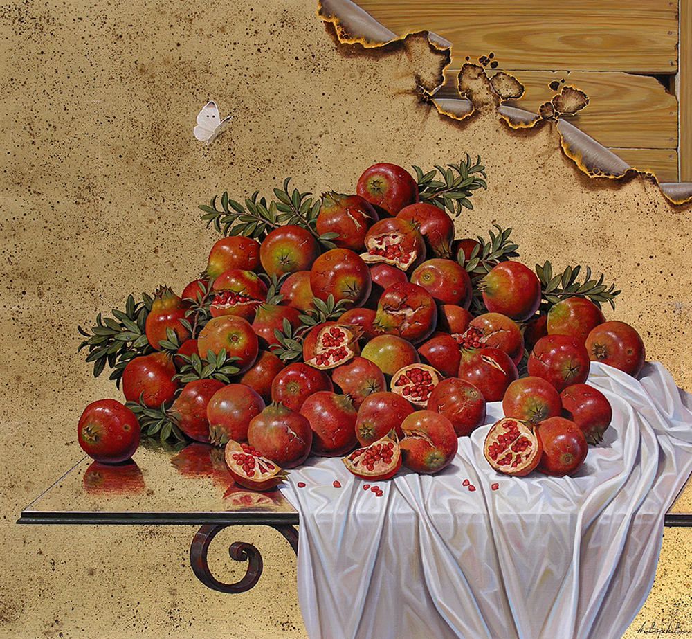 Burned Paintings , Food , Fruit“SMOLDERING” oil on canvas 90/100cm