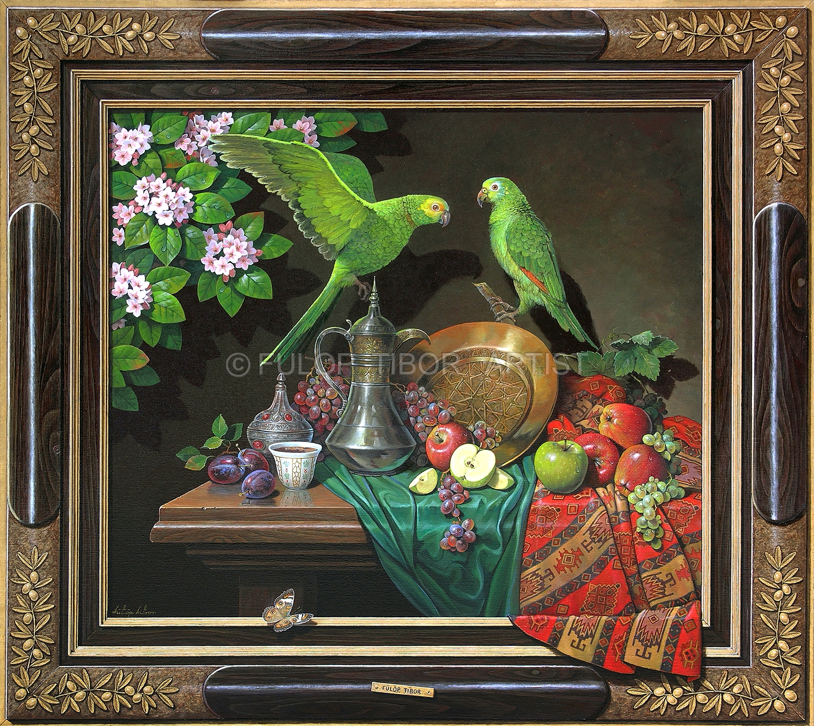 Food , Framed Narratives , FruitParrots on Glass with Painted Frame